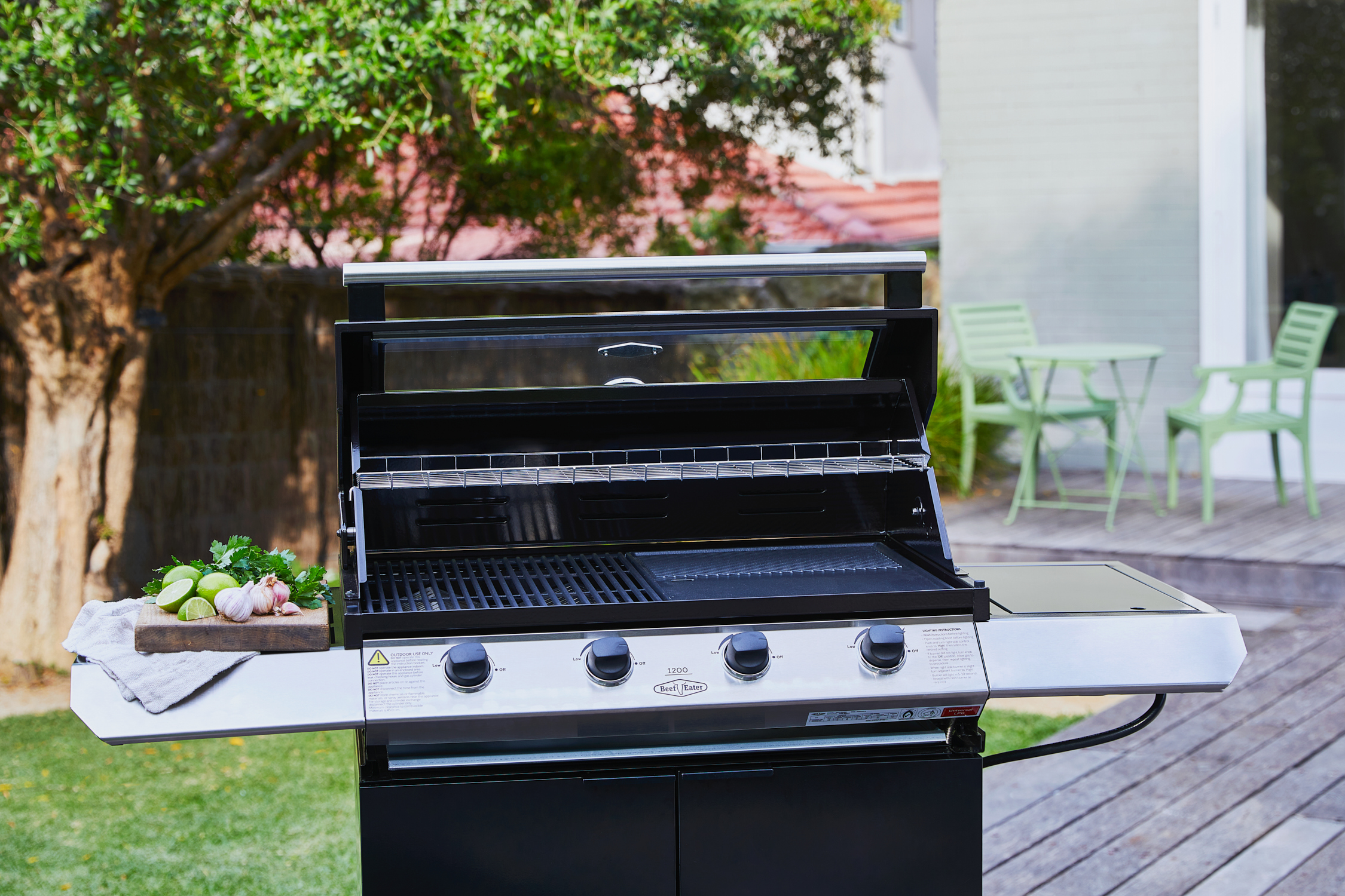 BeefEater gas grill 1200S series with 4 cast burners in stainless steel