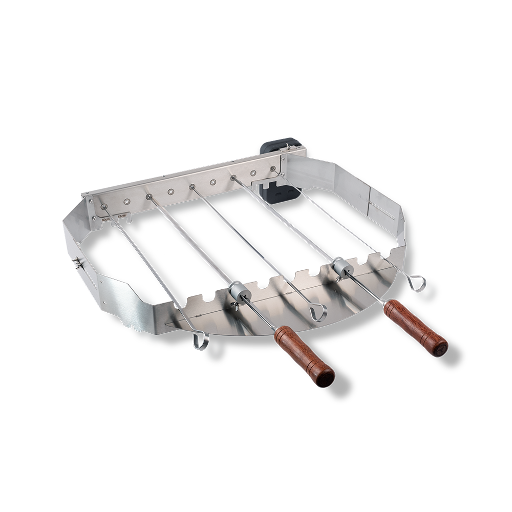 Turn your kettle grill into a fully automatic spit turner for up to 8 skewers.